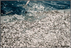 Overpopulation of alewives led to massive die-offs that fouled beaches and significantly contributed to a decline in Great Lakes tourism during the 1960s. The public demanded action from fishery managers. PHOTOS: GLFC (TOP), C. KRUEGER, GLFC (BOTTOM)